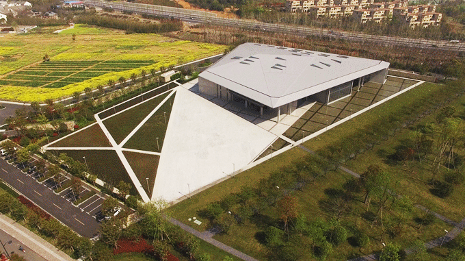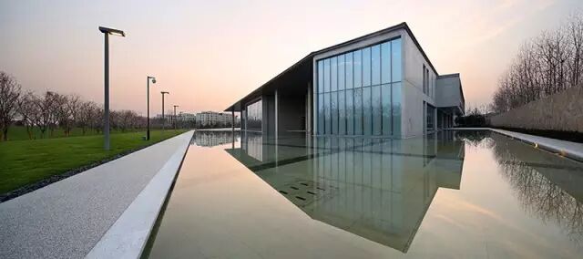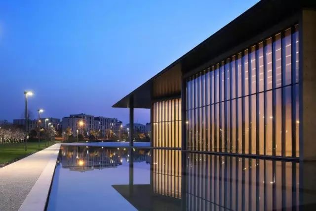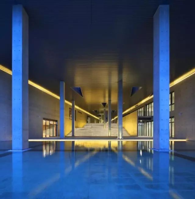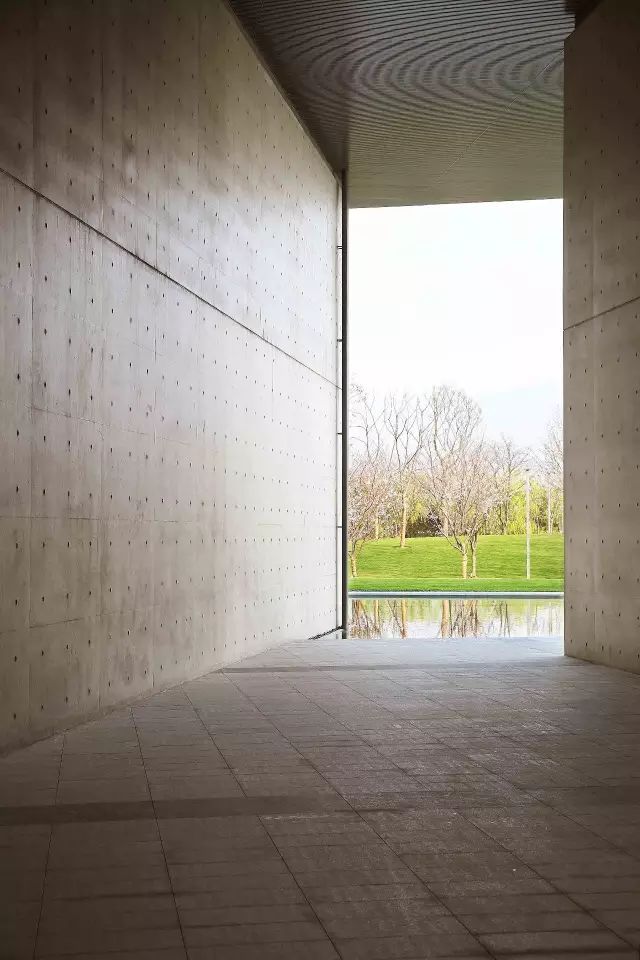而大屋顶和整个庭院上是安藤先生微妙的几何切割,艺术中心和良渚的山川由此紧紧相连着。