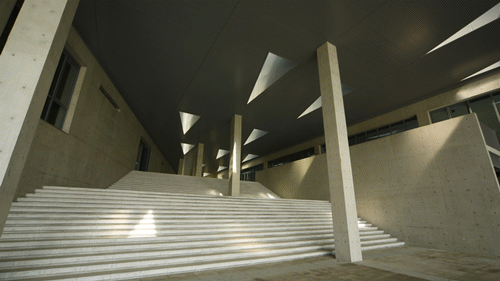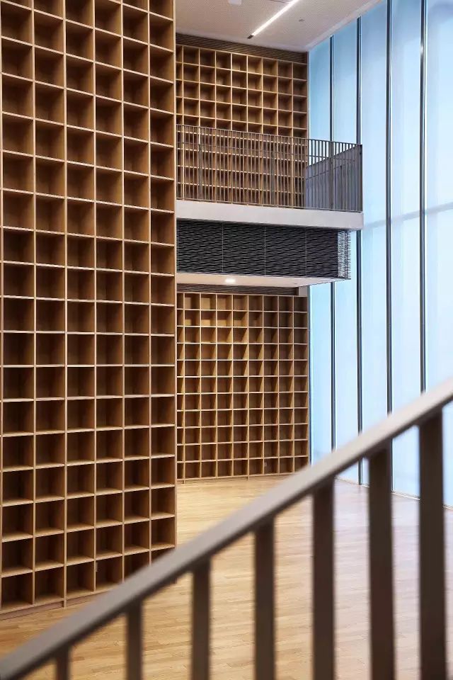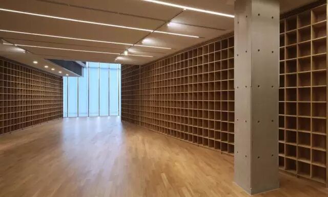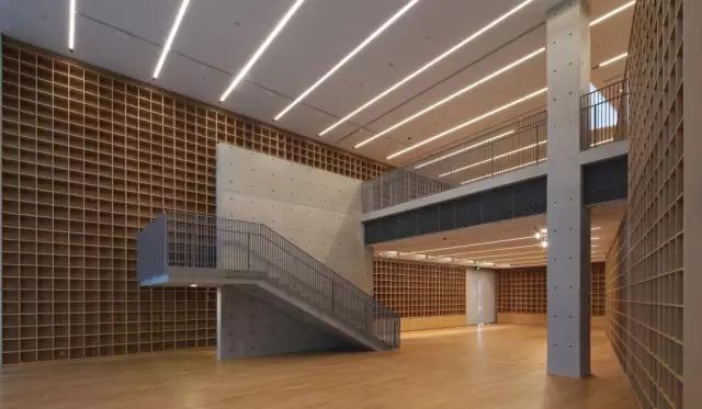 隐藏在大屋顶之下的,安藤先生将整个建筑分成了三块。南边是美术馆功能的展示栋,北侧是教授舞蹈,音乐,艺术课程的文化栋,中间则是有阅读大厅和图书馆的文化栋。