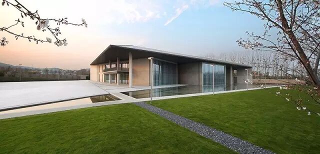 而大屋顶和整个庭院上是安藤先生微妙的几何切割,艺术中心和良渚的山川由此紧紧相连着。